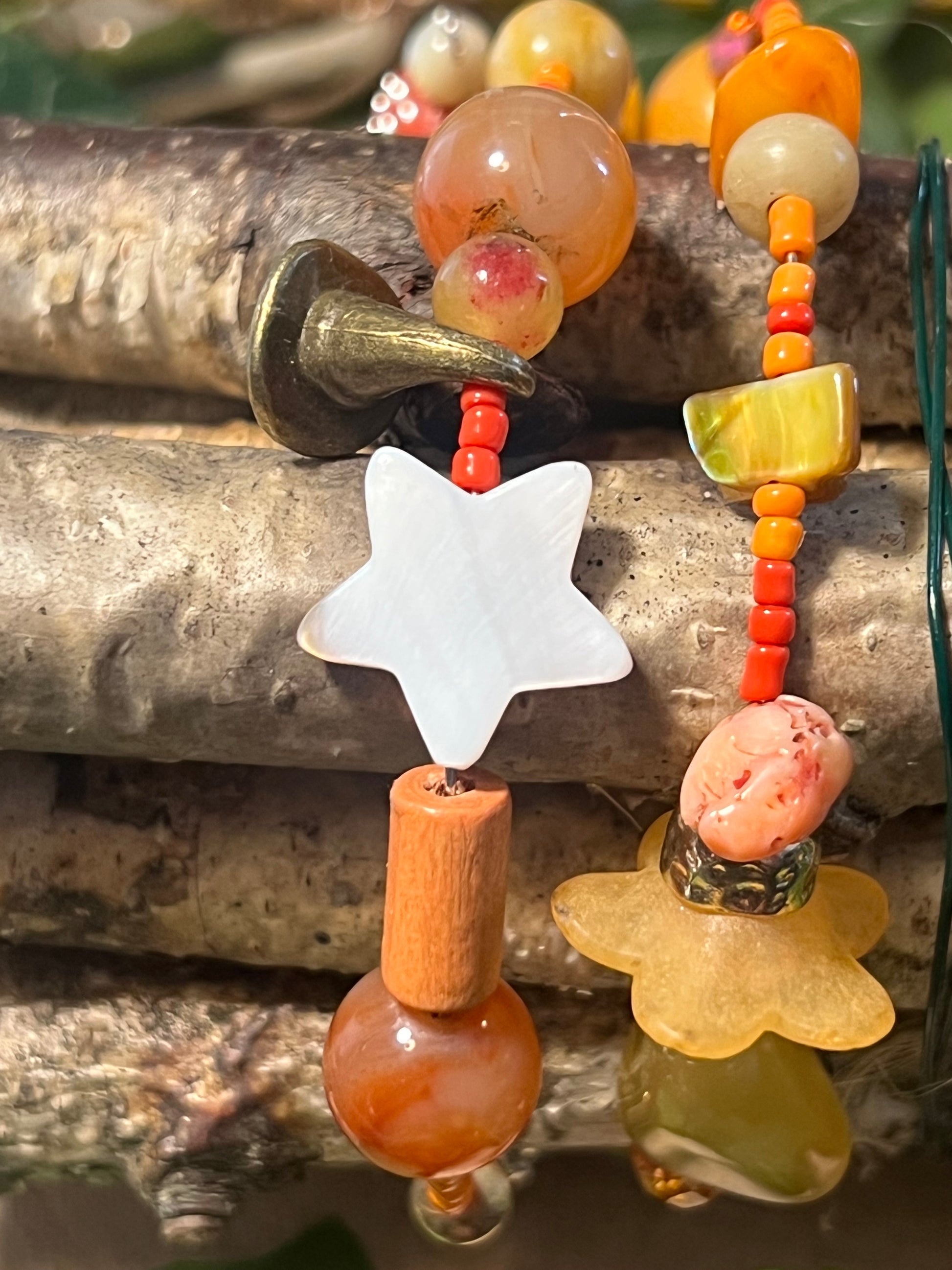 Handmade from New and repurposed Beads of coral, gemstones, glass, mother-of-pearl, & bone.